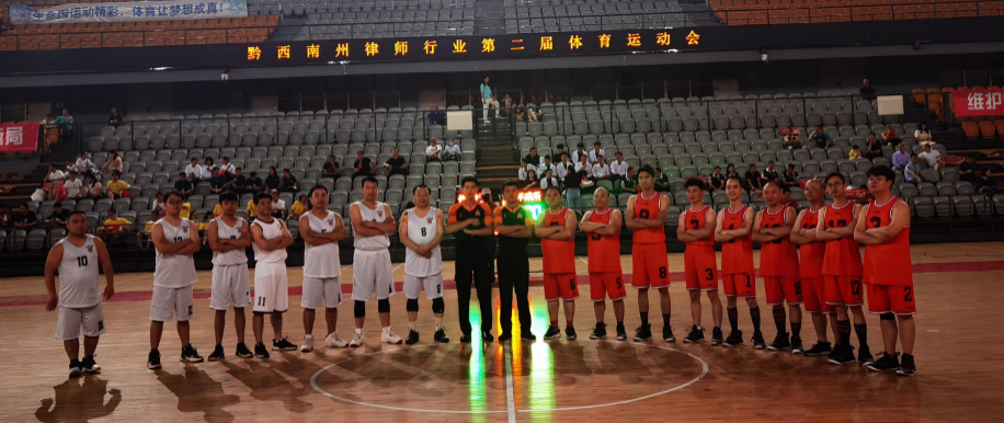 各代表队退场后,黔西南州司法局篮球队与贵州年成事务所篮球队步入主会场,拉开揭幕战。经过40多分钟的鏖战,州司法局篮球队以33比17,赢得本场比赛。