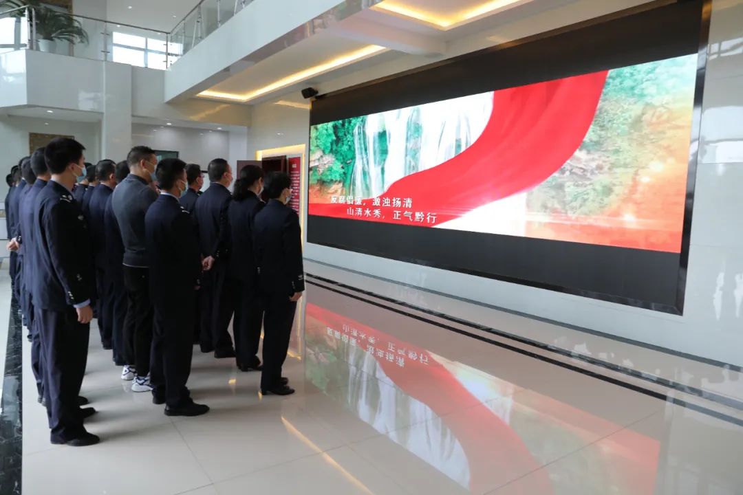 在讲解员的引导下,大家观看了《激浊扬清 正气黔行》短片、参观基地展厅、观看警示教育专题片。讲解员围绕“我们党面临的最大威胁就是腐败”、“党员领导干部必须干净担当”、“把做人做事的底线亮出来”、“要把警示教育当‘镜子’把自己摆进去对照”、“组织才是最大的靠山”五个方面进行讲解。一个个鲜活的故事和案例,通过视频播放、图文和实物展示、场景演绎等方式的呈现,让大家思想上受到了触动和警醒,强化了廉洁从政意识,绷紧了反腐倡廉这根弦。