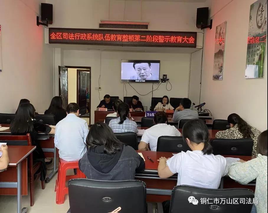 4月30日下午,万山区司法局召开司法行政系统队伍教育整顿第二阶段警示教育大会。