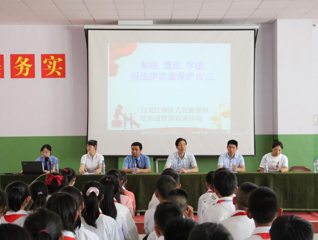 在“六一”国际儿童节来临之际,白龙江林区院开展了“检爱同行,共护未来”和“知法、懂法、守法,用法律武器保护自己”为主题的检察开放日宣传活动。活动中,该院党组书记、检察长赵阳平和未检干警一同前往白林中学,给学生们带来了一场生动精彩的法律宣传课。