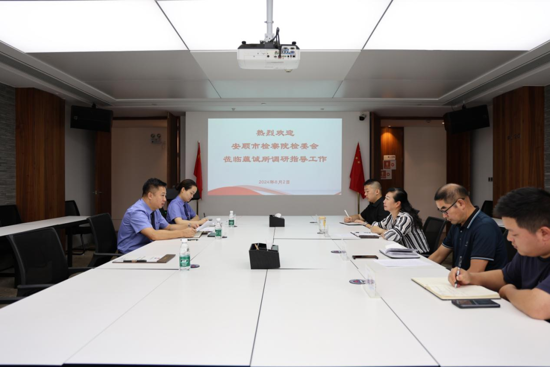 8月2日,安顺市人民检察院检委会专职委员杨挺一行到蕴诚律师事务所,对市人大代表王琴在市“两会”上对市检察机关工作提出的建议意见进行回复交流。