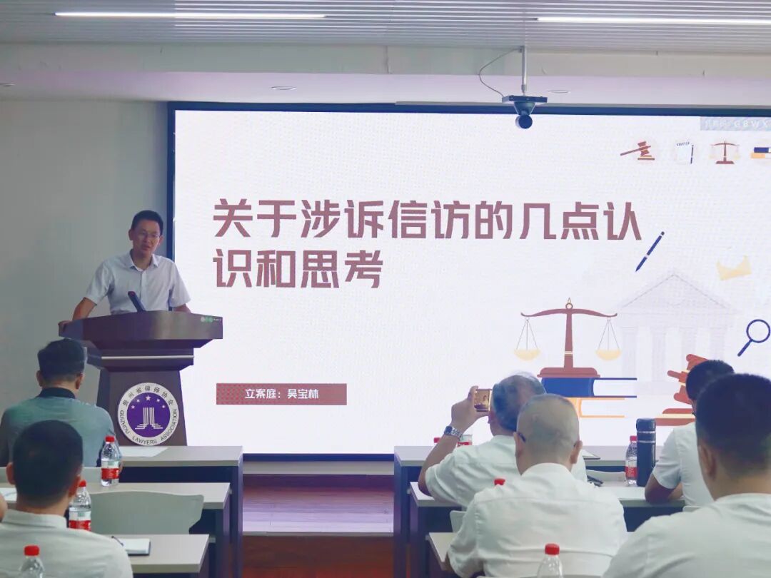 吴宝林以《关于涉诉信访的几点认识和思考》为题,围绕涉诉信访是什么、涉诉信访怎么看、涉诉信访怎么办和做好“有信必复”四个方面的内容进行了分享,向参会律师阐释了涉诉信访的概念及范畴、涉诉信访制度作用,涉诉信访工作的原则。